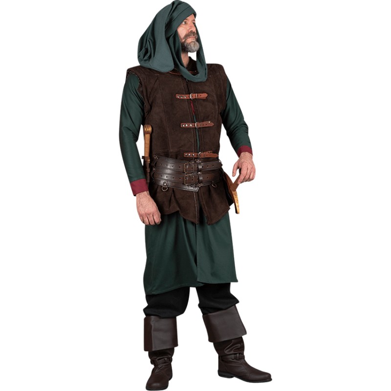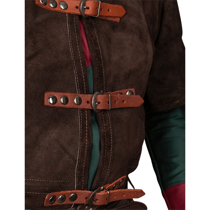 This heavy suede vest is perfect for your historical or fantasy character. Includes eyelets beneath the shoulder cuffs for attaching long or short sleeves (sold separately)
